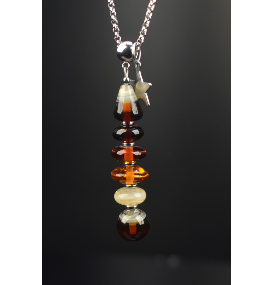 - Perles de verre filé au chalumeau : Chaque perle est façonnée à la main, garantissant des créations uniques et originales. Les perles varient en couleurs et en formes, ajoutant une touche de dynamisme et de sophistication à chaque collier.