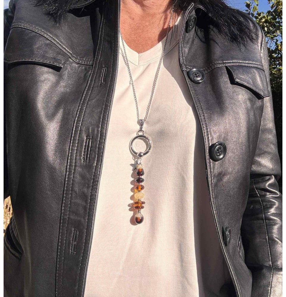 - Perles de verre filé au chalumeau : Chaque perle est façonnée à la main, garantissant des créations uniques et originales. Les perles varient en couleurs et en formes, ajoutant une touche de dynamisme et de sophistication à chaque collier.