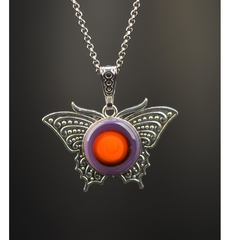 Collier Papillon en Verre Filé au Chalumeau – Orange et violet