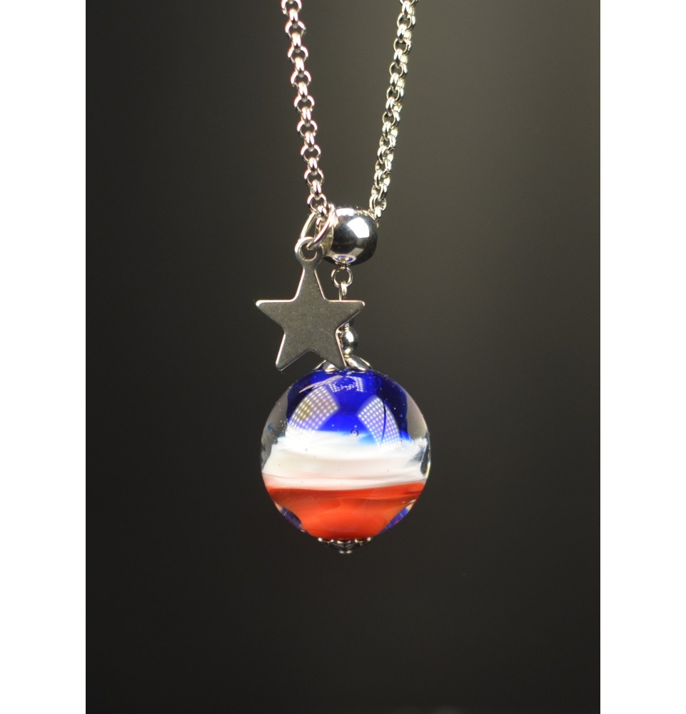 Collier "BLEU BLANC ROUGE" en Perles de Verre avec Breloque "étoile"