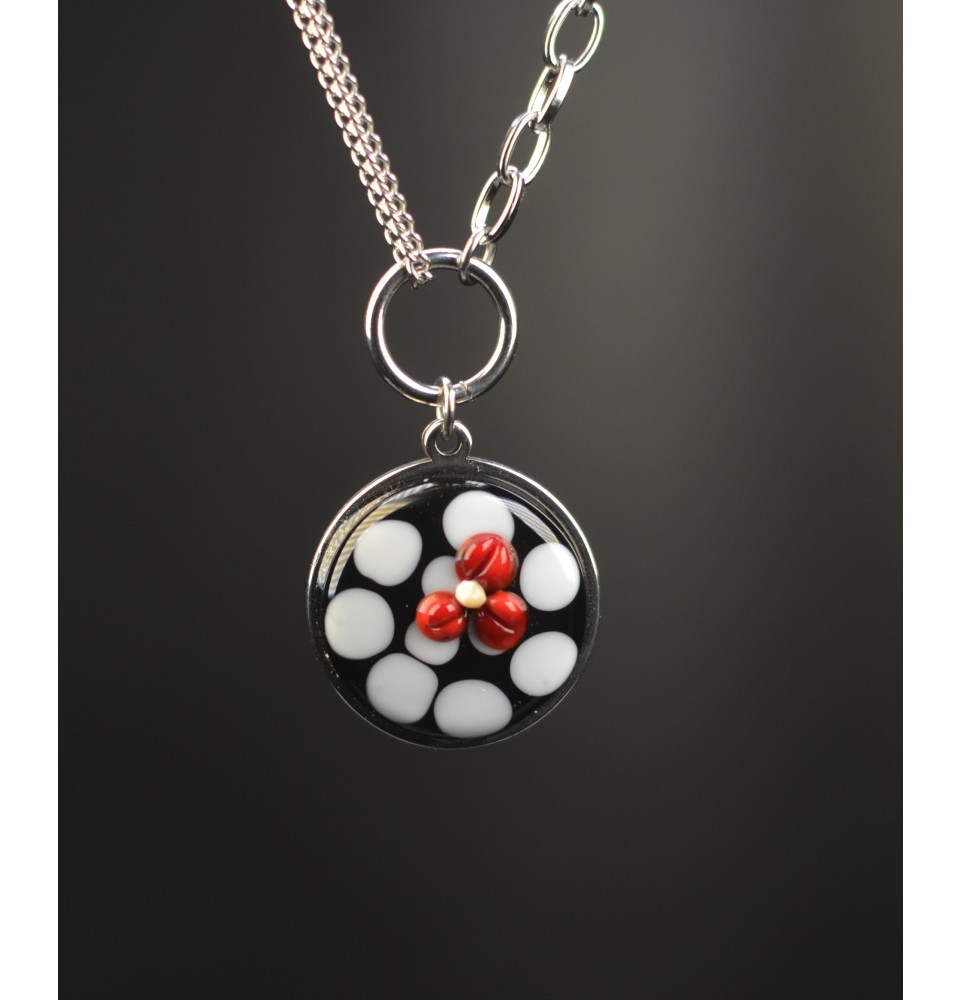 Collier cabochon en verre filé – GIRLY rouge noir blanc
