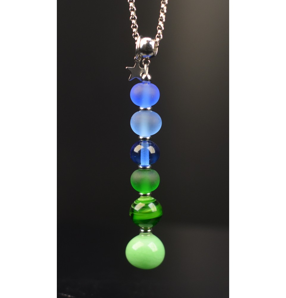 - Perles de verre filé au chalumeau : Chaque perle est façonnée à la main, garantissant des créations uniques et originales. Les perles varient en couleurs et en formes, ajoutant une touche de dynamisme et de sophistication à chaque collier.