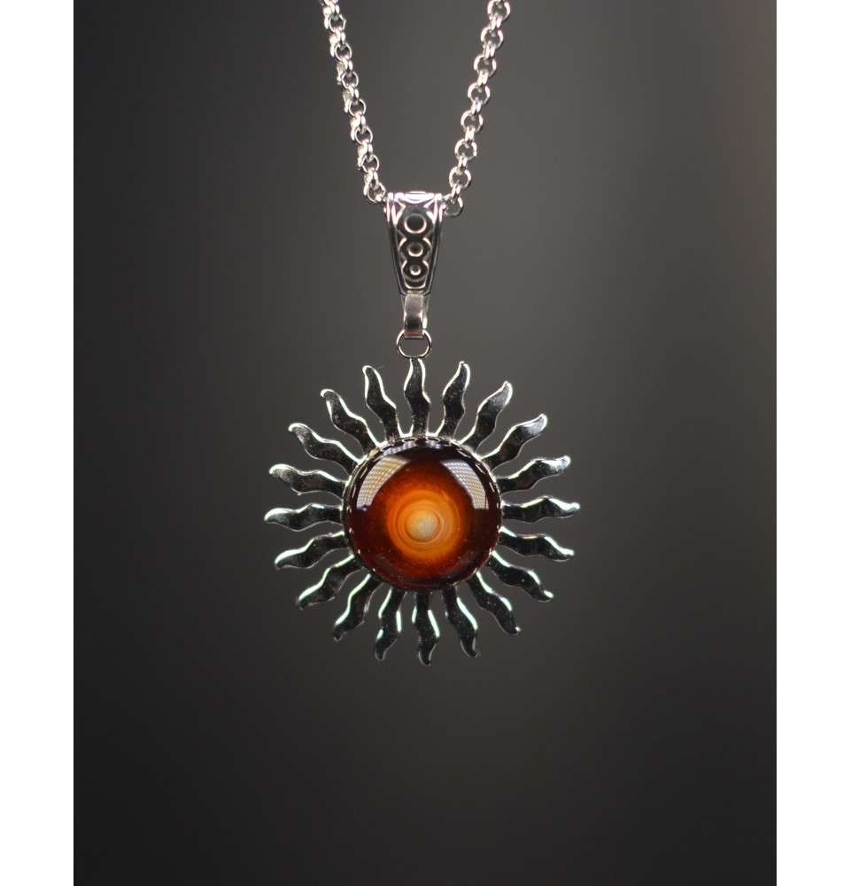 Collier Soleil – Cabochon en verre Ambré - ACIER INOXYDABLE DORE