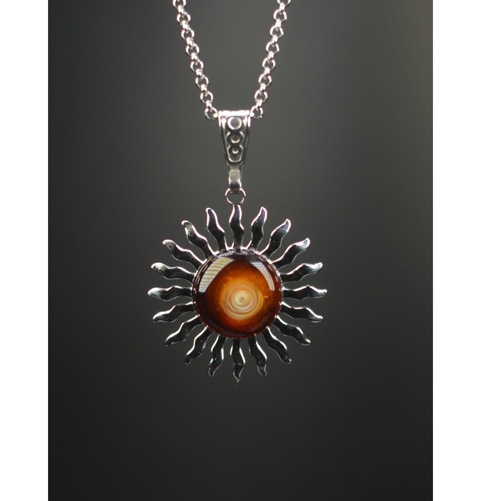 Le pendentif en forme de soleil repose sur une chaîne en acier inoxydable de 45 cm (+ 3 cm de rallonge), résistante et durable, idéale pour un port quotidien.