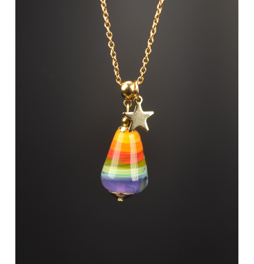 Collier “Éclat de Couleurs” – Perle de verre filé au chalumeau - acier inoxydable doré