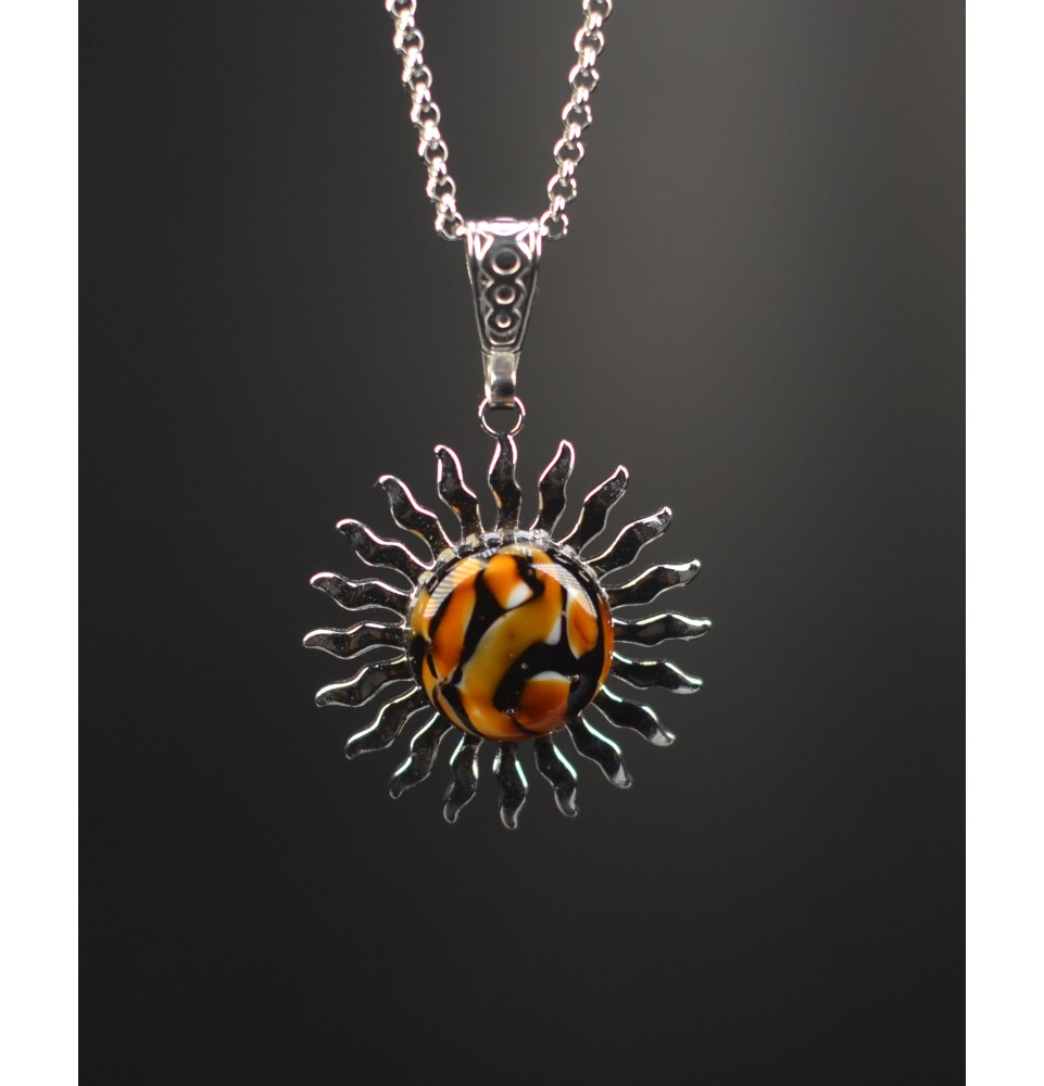 Le pendentif en forme de soleil repose sur une chaîne en acier inoxydable de 43 cm (+ 3 cm de rallonge), résistante et durable, idéale pour un port quotidien.