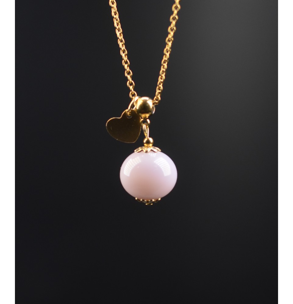 Collier court en acier inoxydable doré & perle de verre ROSE clair – Création artisanale