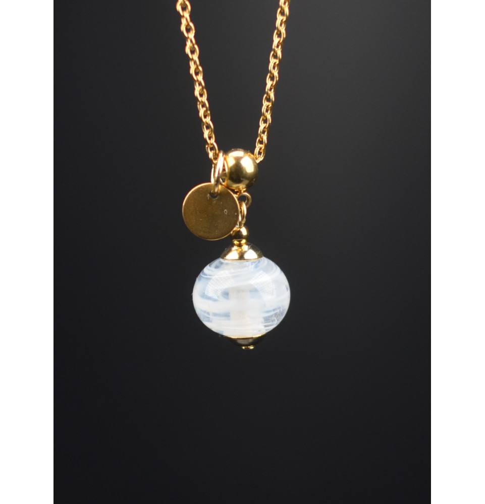 Un souffle de nuage – Collier artisanal Liloo Créations - perles de verre filé - acier inoxydable doré
