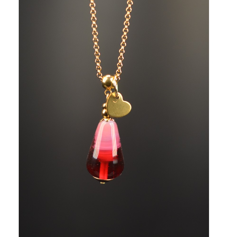 Collier “Éclat de Couleurs” – Perle de verre filé au chalumeau - acier inoxydable doré