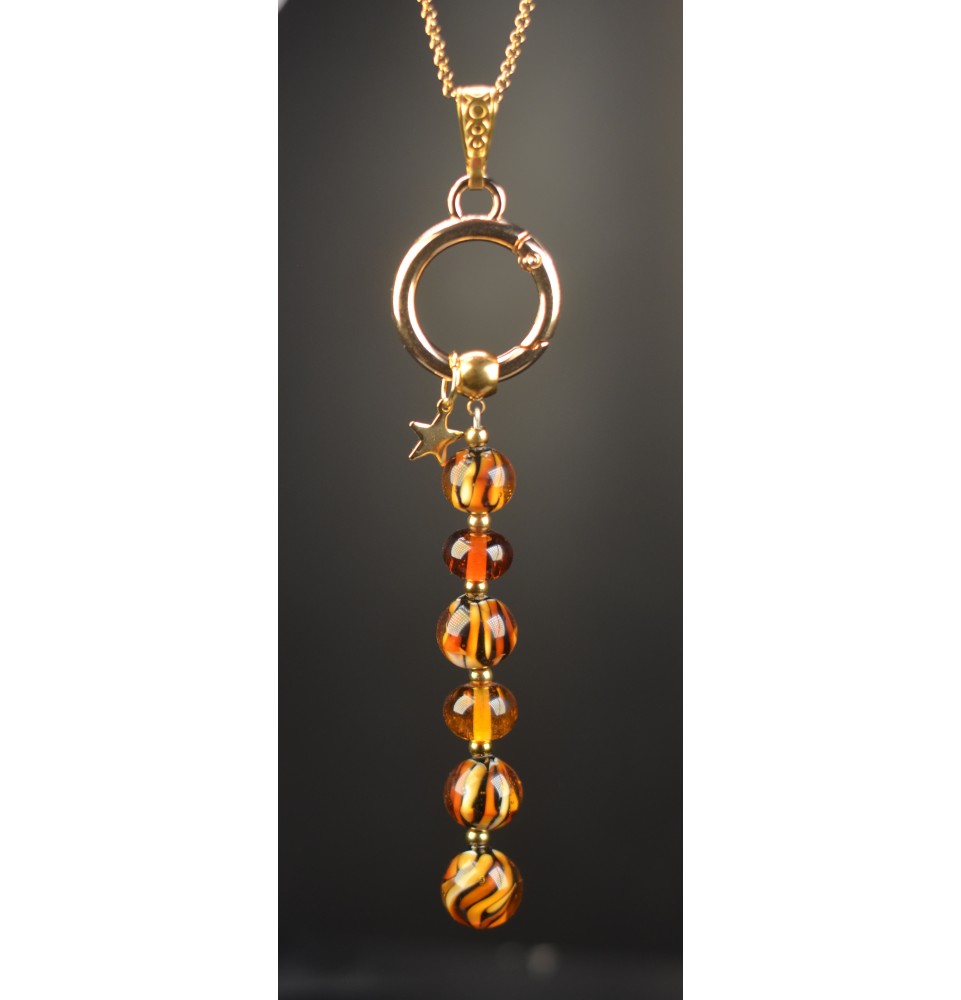 Collier "Éclat de Joie"Léopard" en perles de verre filé - acier inoxydable doré