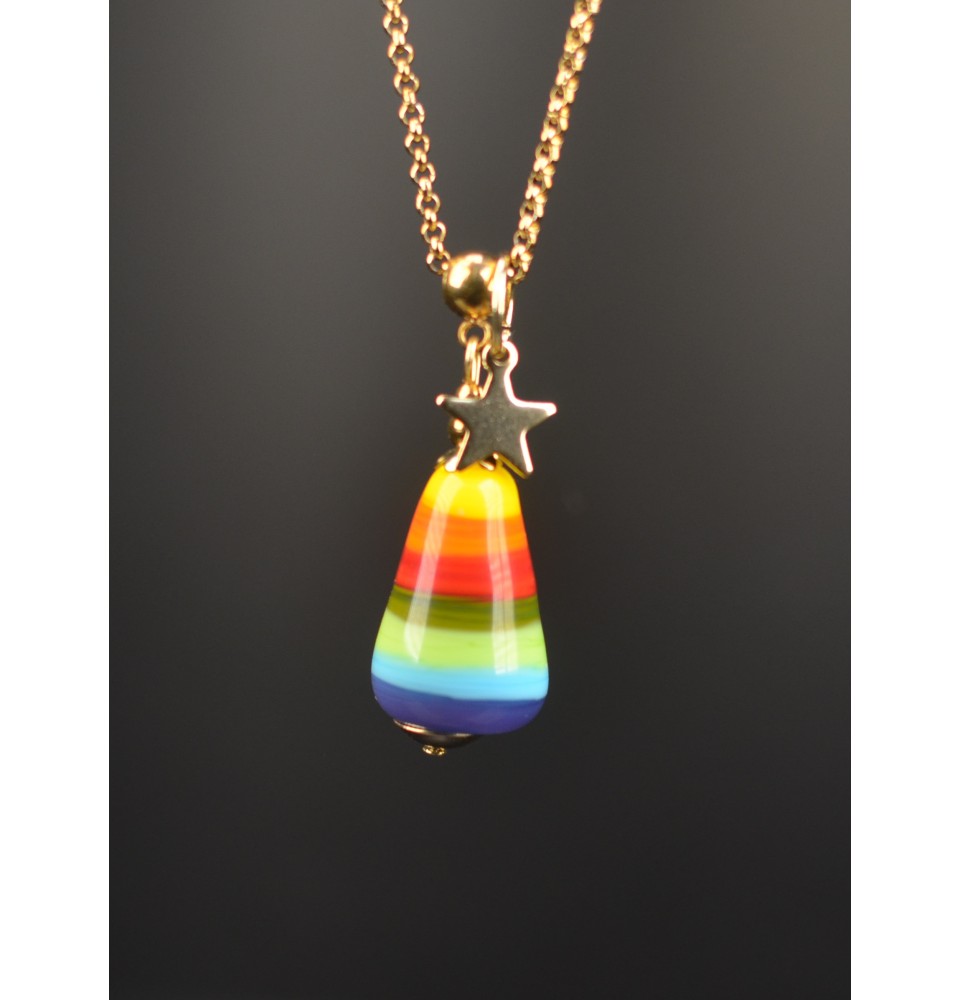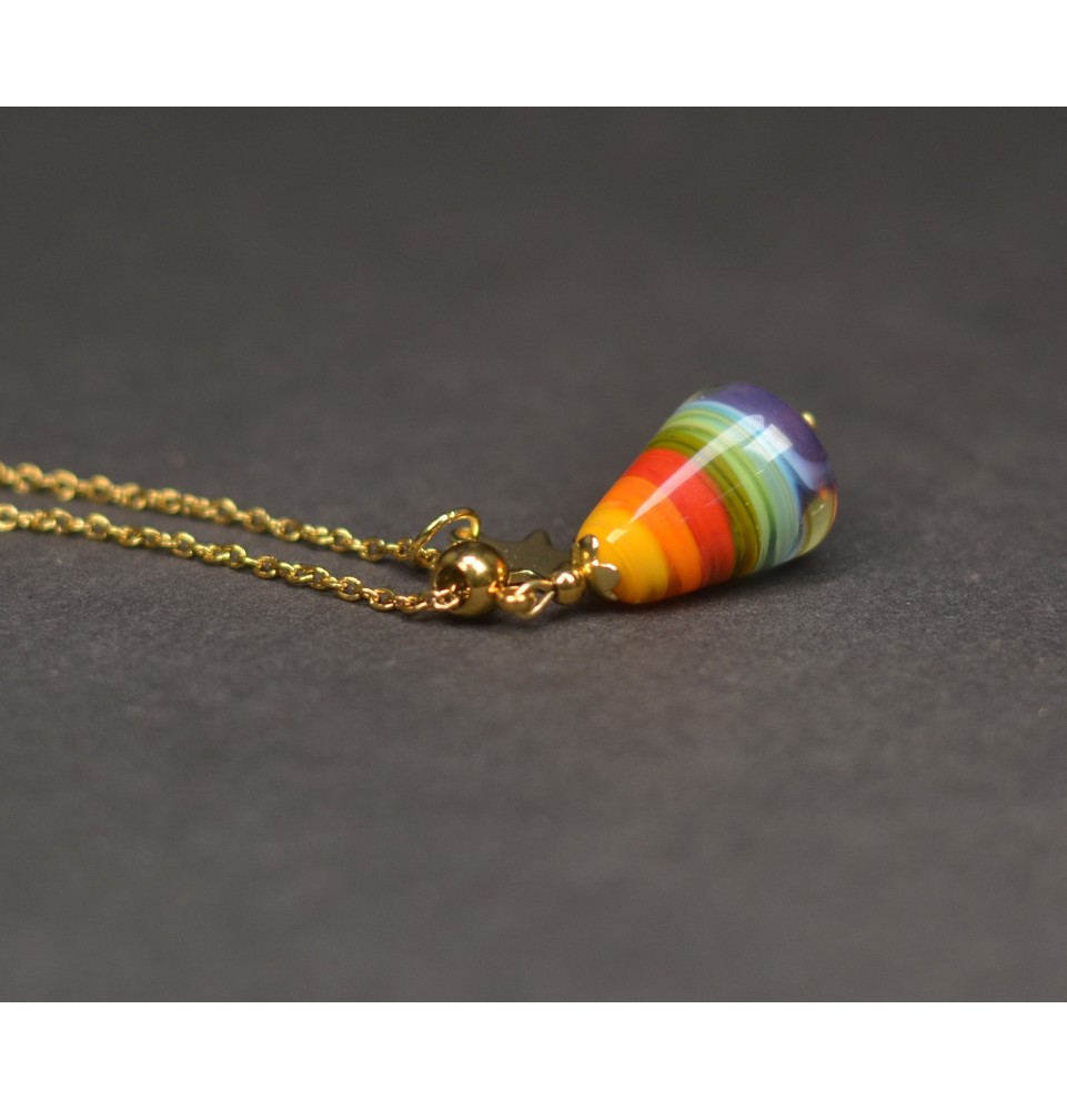 Collier “Éclat de Couleurs” – Perle de verre filé au chalumeau - acier inoxydable doré