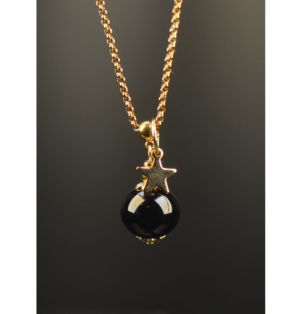 Collier court en acier inoxydable doré & perle de verre NOIR – Création artisanale