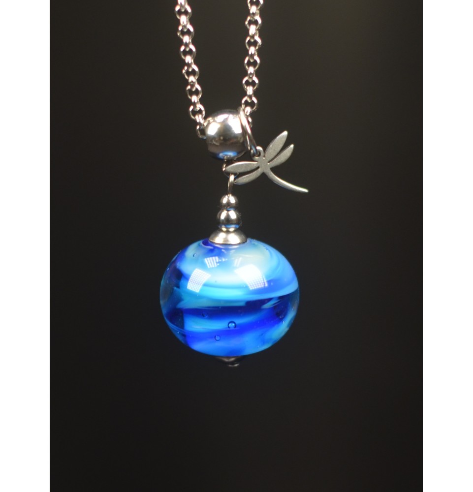 Collier "bleu" en Perles de Verre avec Breloque libellule