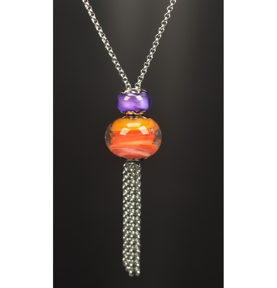 Collier Long Épuré avec Perle multicolore, en Verre Filé – Liloo Créations