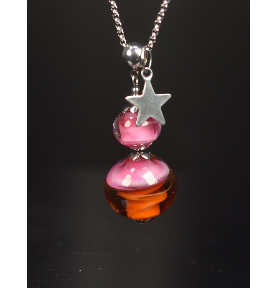 Collier "trose caramel" en Perles de Verre avec Breloque etoile