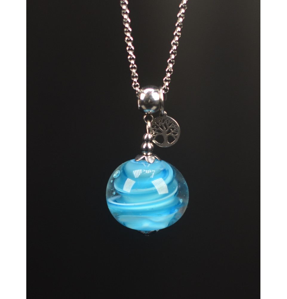 Collier "bleu" en Perles de Verre avec Breloque ARBRE DE VIE