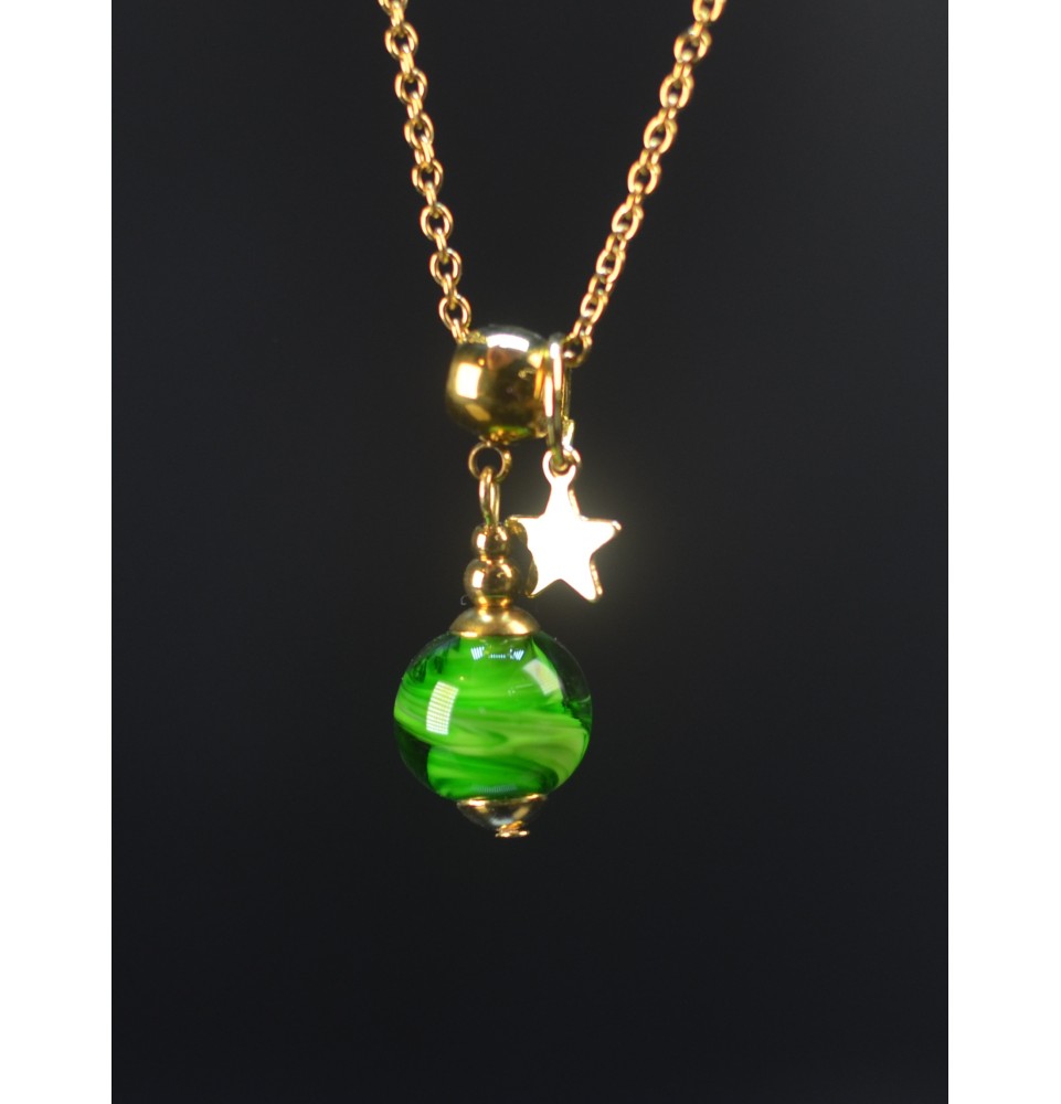 Collier court doré vert rosetta – Perle de verre artisanale 1,35 cm