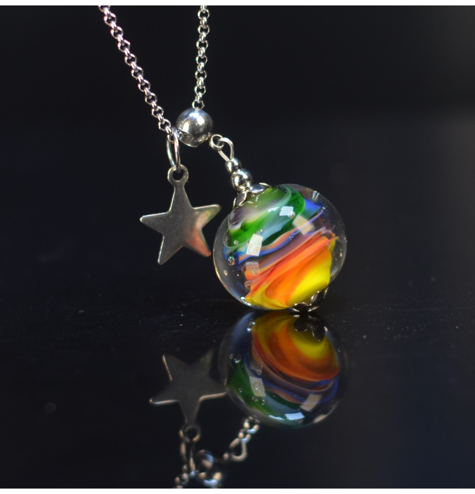 Collier "multicolore" en Perles de Verre avec Breloque Etoile