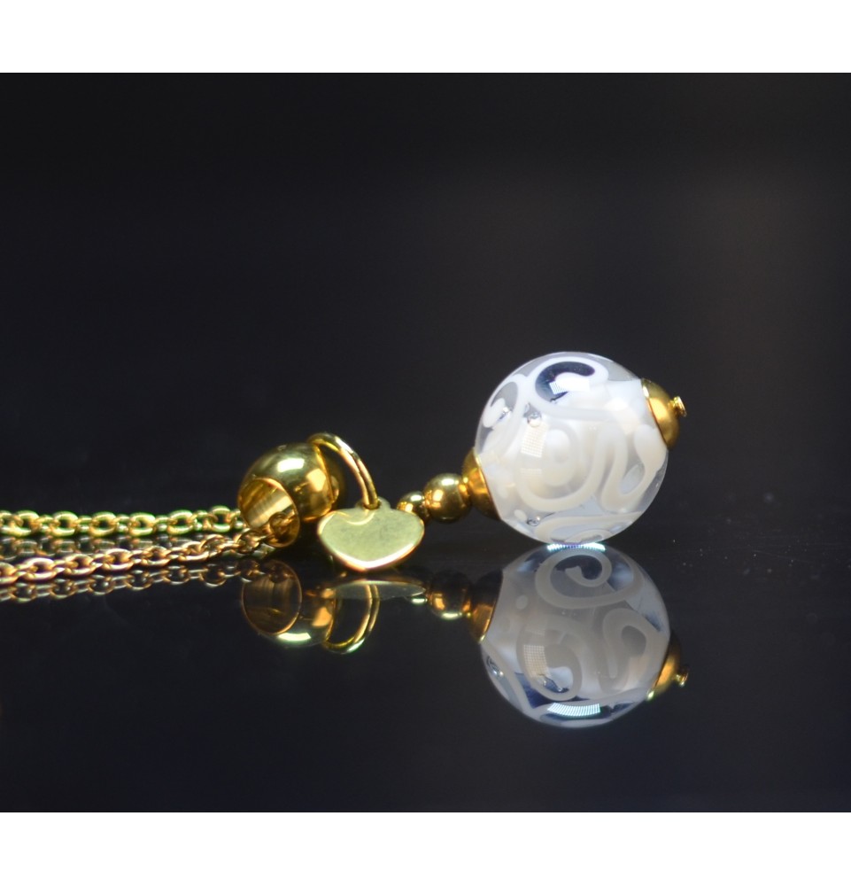 Un souffle de nuage BLANC – Collier artisanal Liloo Créations - perles de verre filé - acier inoxydable doré