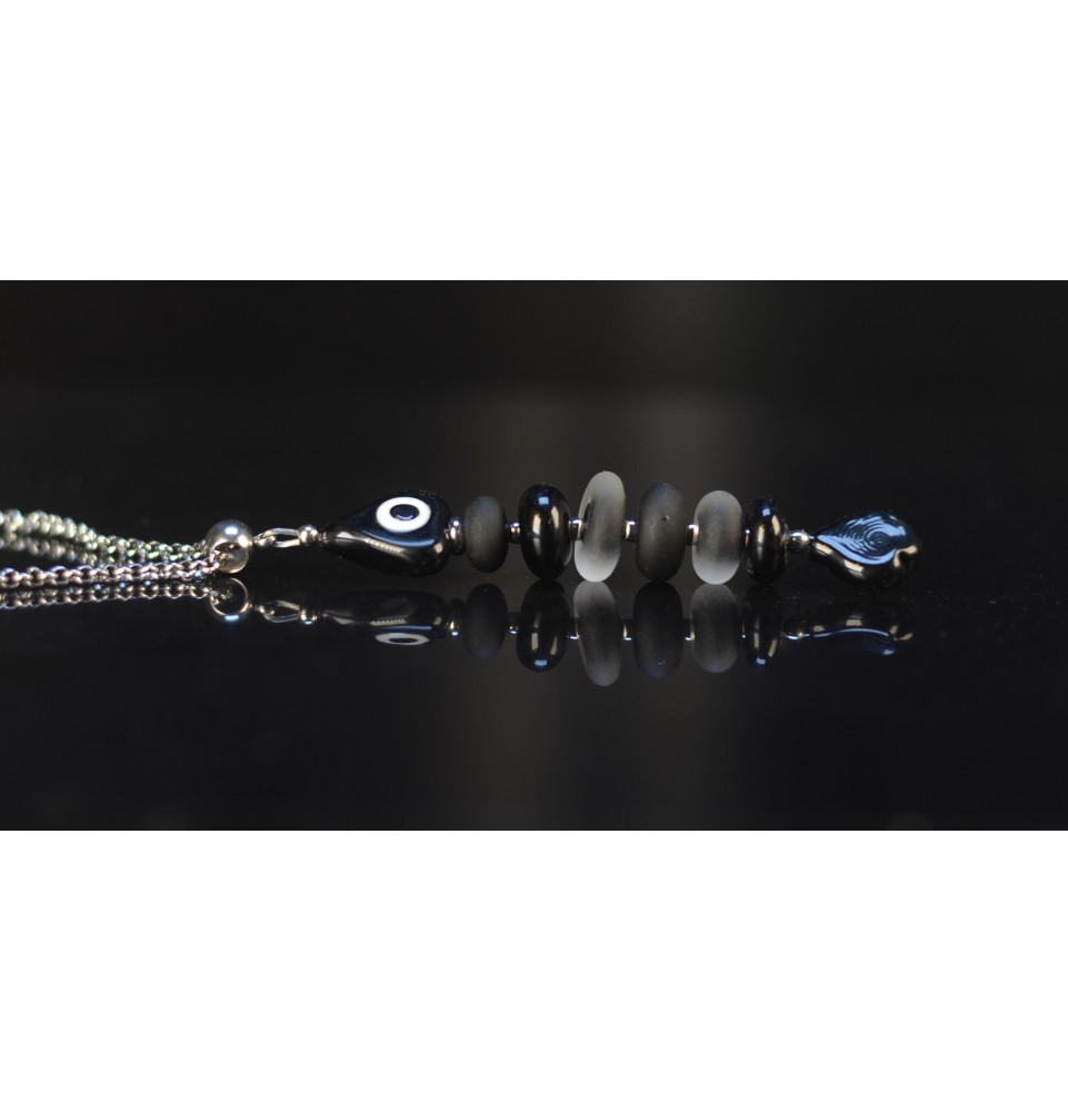 Collier Poisson en verre filé – noir mate et brillant & acier inoxydable