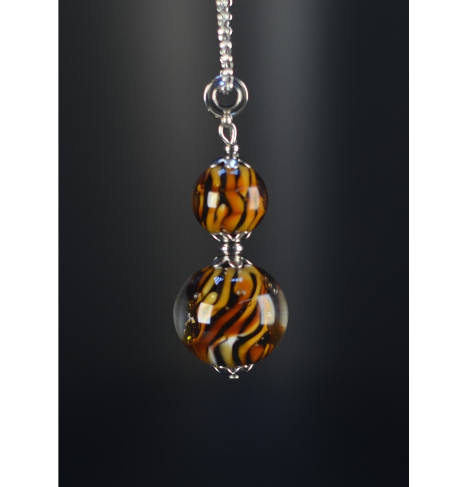 Collier long en acier inoxydable , orné d’une grosse perle de verre filée au chalumeau au motif léopard.