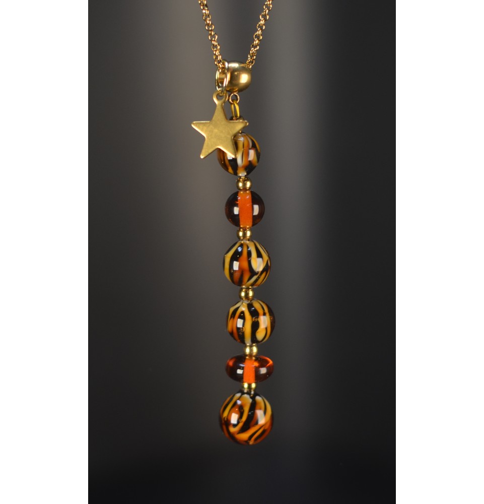 - Perles de verre filé au chalumeau : Chaque perle est façonnée à la main, garantissant des créations uniques et originales. Les perles varient en couleurs et en formes, ajoutant une touche de dynamisme et de sophistication à chaque collier.