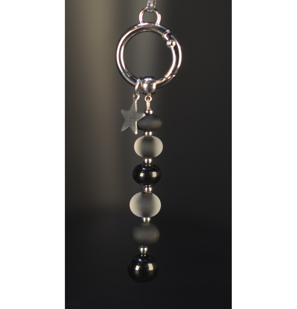 Collier Modulable Noir – Pendentif Verre Filé Mate & Brillant avec Mousqueton – Acier Inoxydable