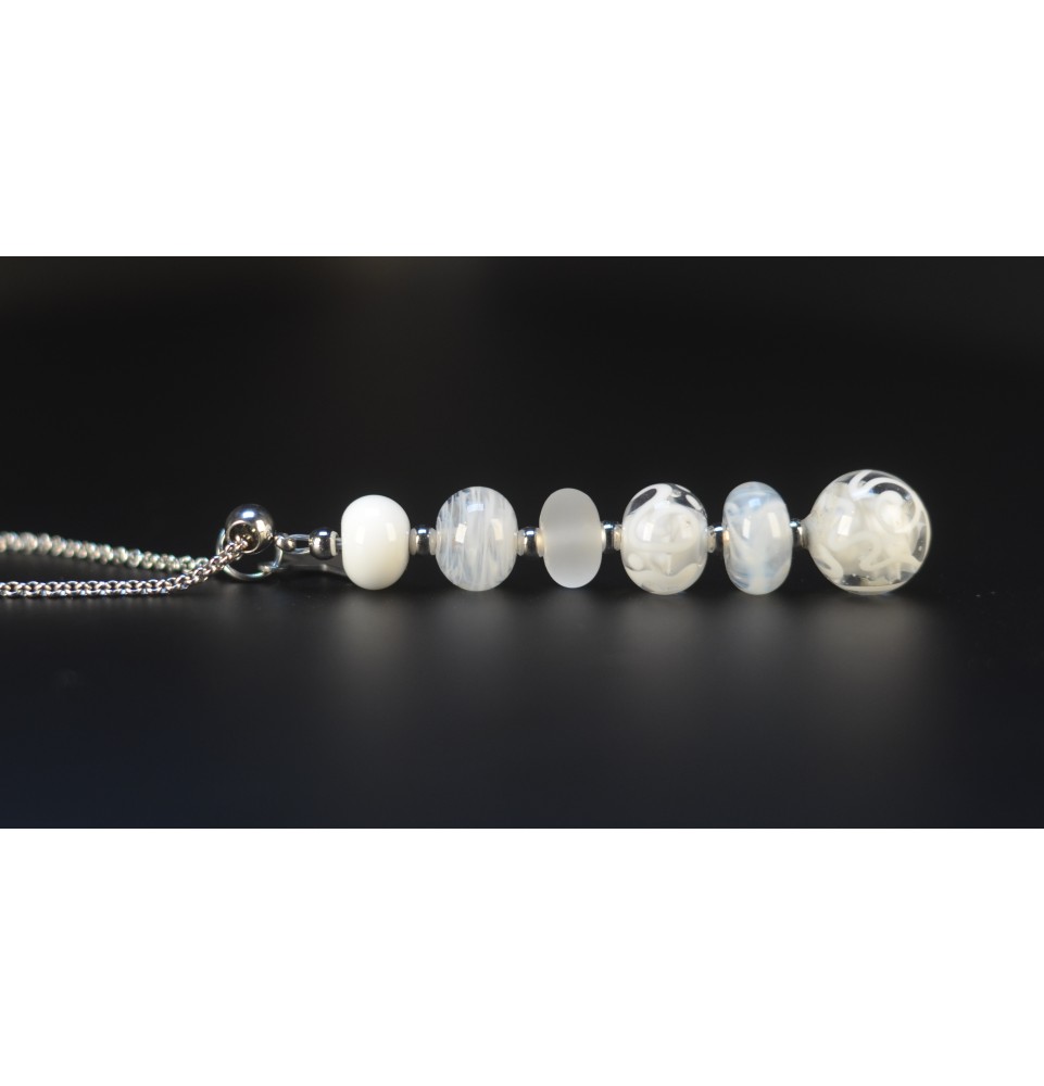 Collier blanc Élégance – Perles de Verre Filé Mate & Brillante – Acier Inoxydable Argenté