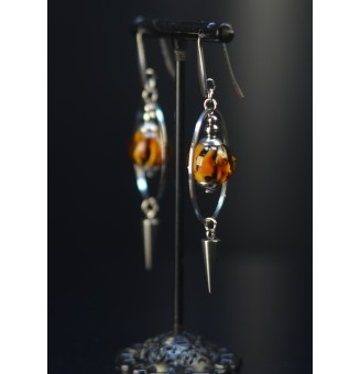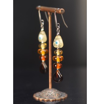 20,00 €Craquez pour ces boucles d’oreilles uniques en acier inoxydable doré, ornées d’un cabochon de verre filé au chalumeau aux sublimes tons ambrés. Chaleureuses et lumineuses, elles apportent une touche d’éclat à vos tenues d’automne et d’hiver. Chaque pièce est fait main dans l’atelier de Liloo Créations à Orange, pour un bijou véritablement unique.