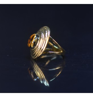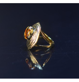 Bague en Verre Filé au Chalumeau "léopard" - acier INOXYDABLE doré