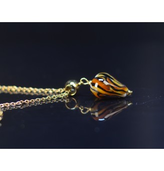 26,00 €Collier long en acier inoxydable doré, orné d’une grosse perle de verre filée au chalumeau au motif léopard.
