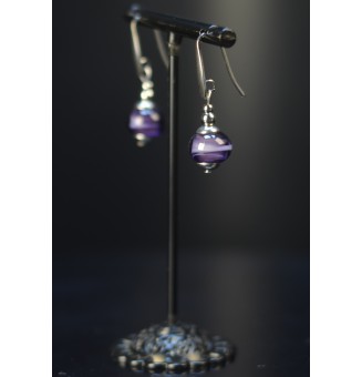 20,00 €Boucles d’oreilles simples et élégantes composées d’un crochet en acier inoxydable et d’une perle de verre filé violette (Ø 1,1 cm).