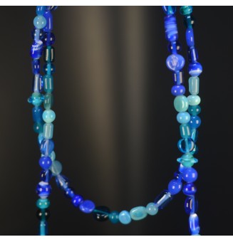 145,00 €Sautoir d’Exception – Nuances de Bleu – 123 Perles de Verre Filé – Pièce Unique