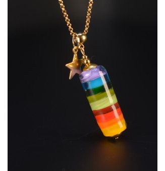 28,00 €Collier "Éclat de Joie" avec chaîne en acier inoxydable 70 cm et pendentif multicolore en 7 perles de verre filé. Un bijou artisanal lumineux, aux couleurs éclatantes et aux formes variées, qui apporte une vraie touche de joie à votre tenue.