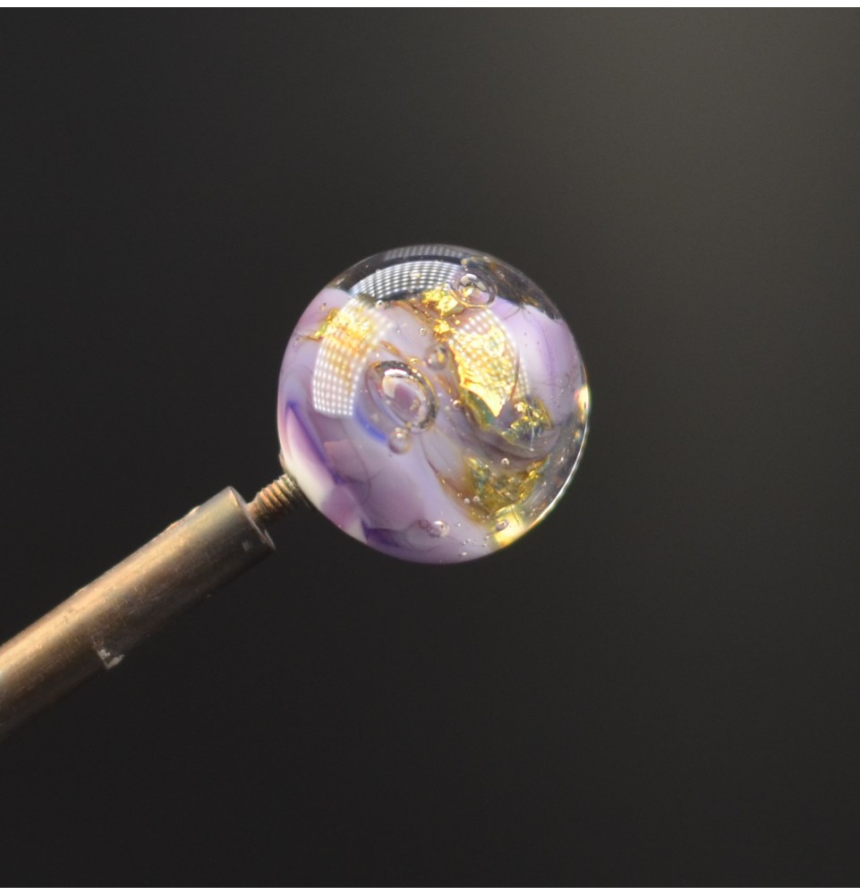 Plongez dans l'océan de la créativité avec notre perle à visser en verre filé violet et or. Cette perle captivante apportera une touche chaleureuse et élégante à vos créations de bijoux.