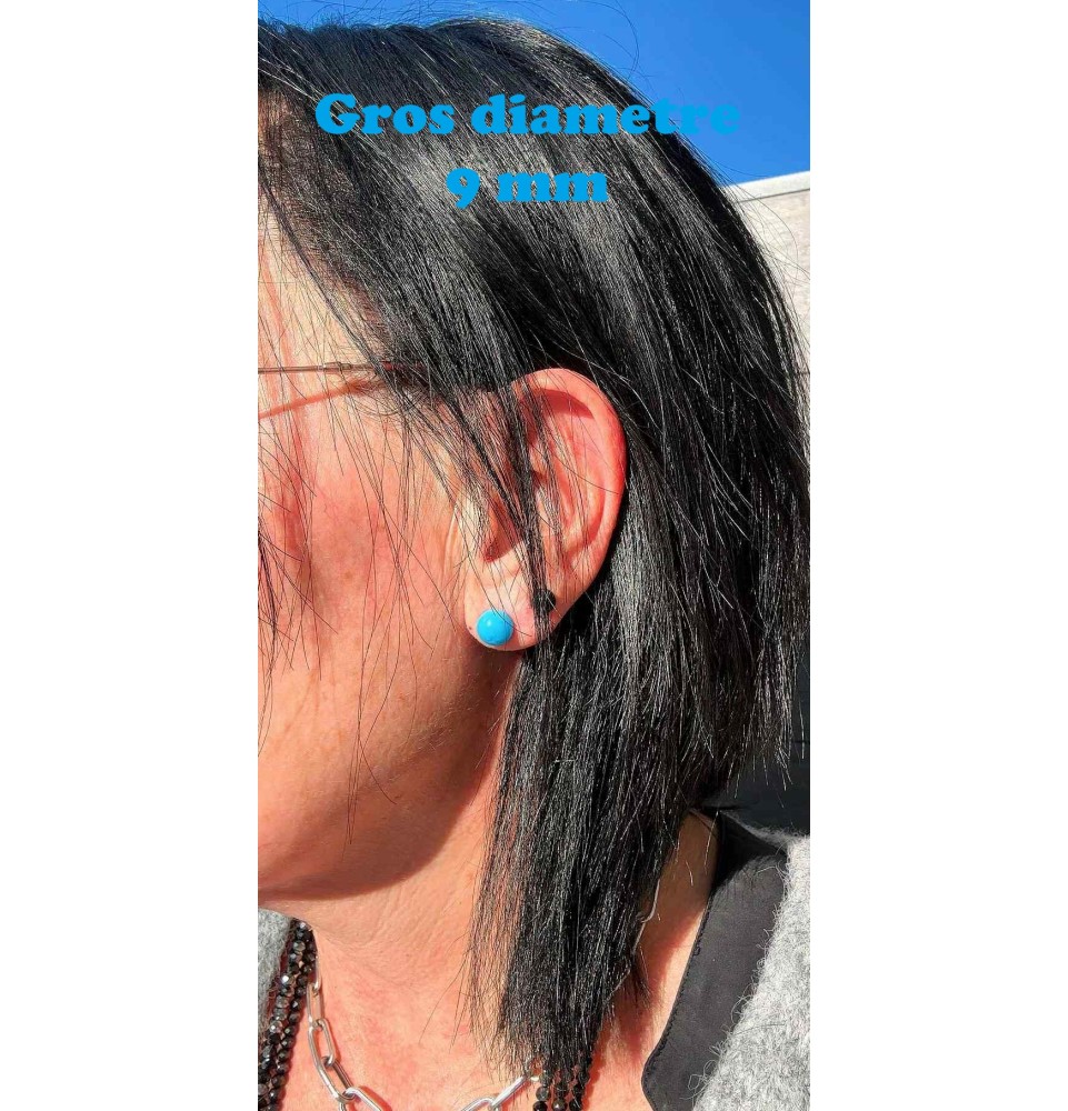 puces d'oreilles Gros diametre, turquoise 9 mm Acier Inoxydable en verre