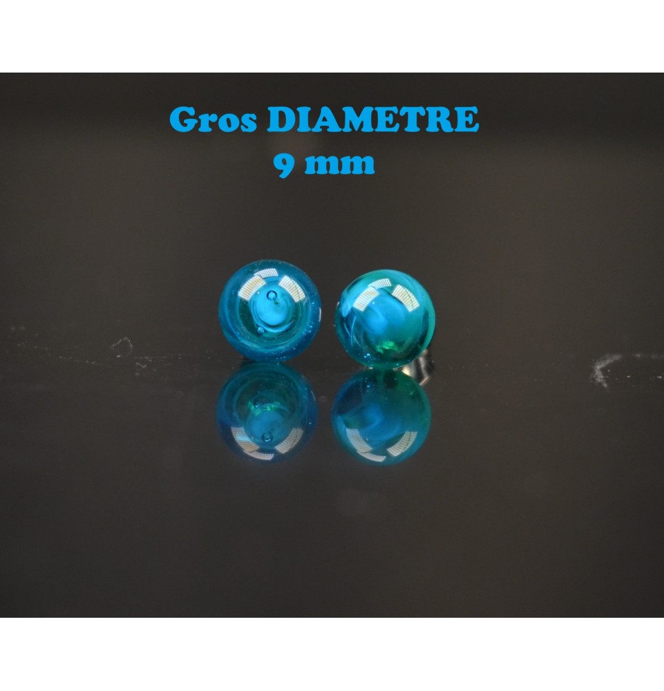 Puces d’oreilles en verre filé bleu/vert – Acier inoxydable - GROS DIAMETRE