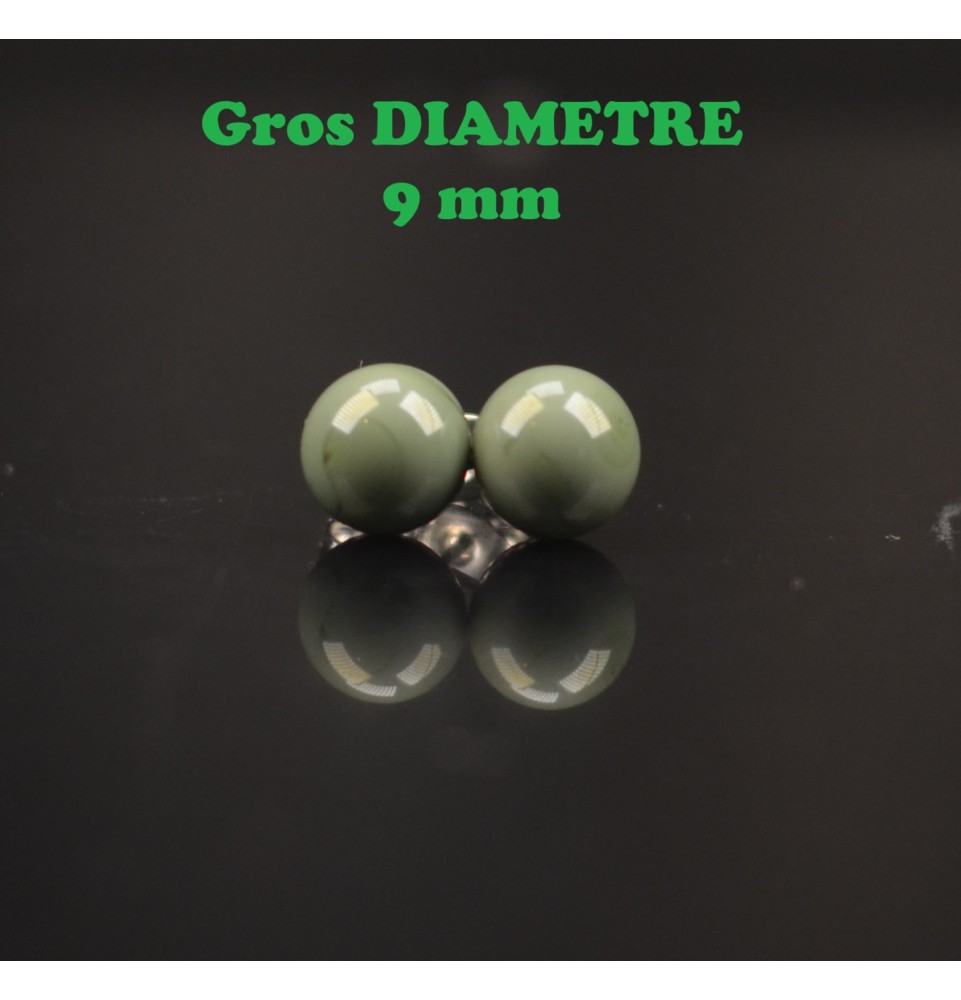 puces d'oreilles Gros diametre, vert kaki 9 mm Acier Inoxydable en verre