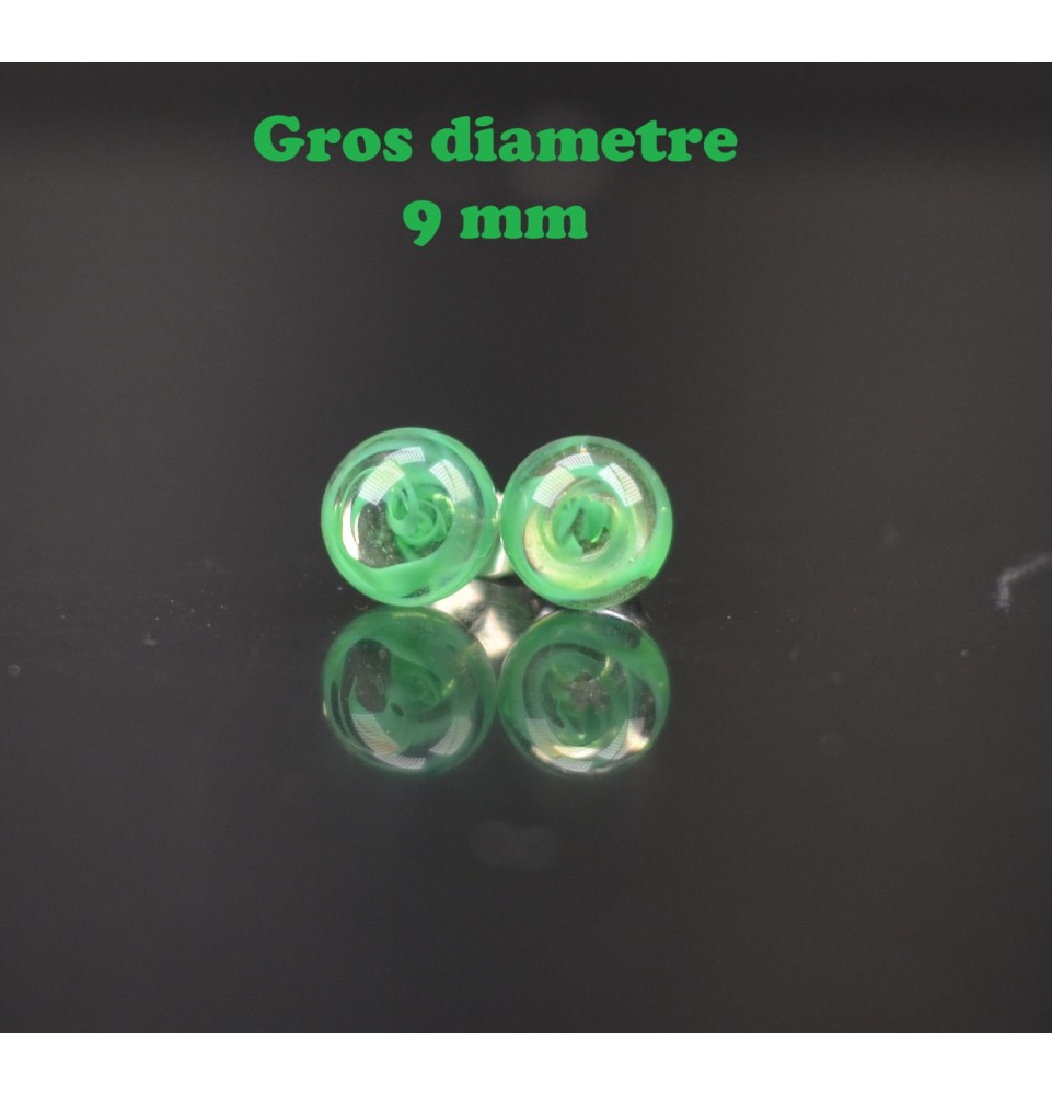 puces d'oreilles Gros diametre, vert ruban 9 mm Acier Inoxydable en verre