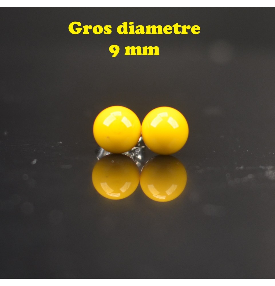 puces d'oreilles Gros diametre, jaune 9 mm Acier Inoxydable en verre