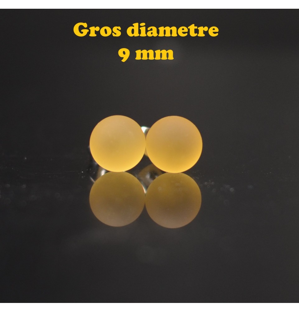 puces d'oreilles Gros diametre, jaune givré 9 mm Acier Inoxydable en verre