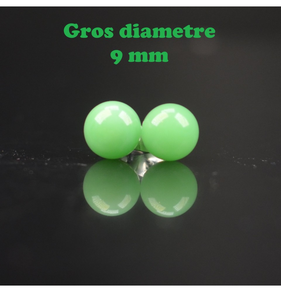 puces d'oreilles Gros diametre, vert jade 9 mm Acier Inoxydable en verre