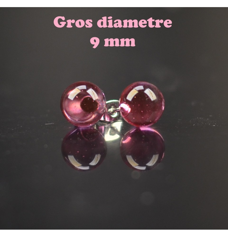 Puces d’oreilles en verre filé rose – Acier inoxydable - GROS DIAMETRE
