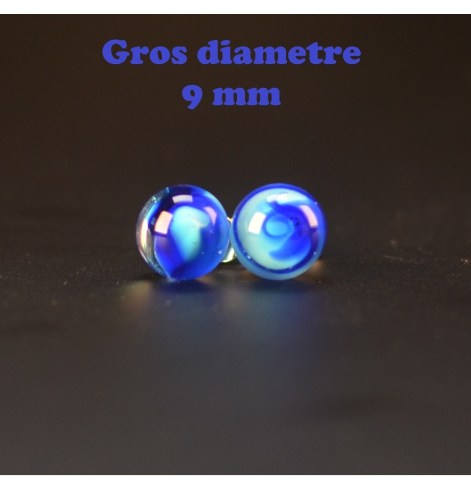 Puces d’oreilles en verre filé 2 bleus – Acier inoxydable - GROS DIAMETRE